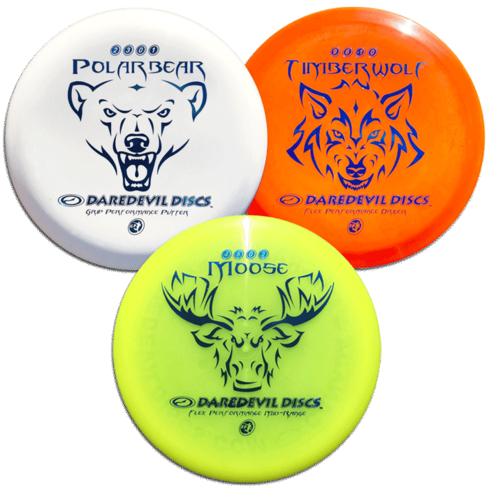 Timberwolf Fairway Driver – This disc is designed for the intermediate to advanced player and is made from our grippy soft super durable ‘Flex Performance’ plastic. It’s easy to control straight flight pattern and excellent glide is perfect to hit any gap in the woods that is 300+! Plus it is great for rounds in colder weather.
