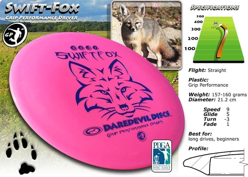 The swiftfox isa great understable fairway driver, with a slight drift to the right and a soft fade at the end, you can trust this disc for easy consistent distance. For slower arm speeds this disc will fly straight and fade slightly right before landing softly. There is a place in everyone’s bag for this discs.